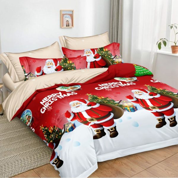 Set Lenjerie de Craciun din Finet Gros, Pucioasa, 6 Piese, Pat 2 Persoane – Santa is Coming – PUF128893-F5