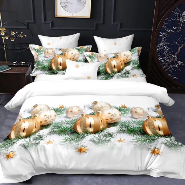 Set Lenjerie de Craciun din Finet Gros, Pucioasa, 6 Piese, Pat 2 Persoane – White Christmas Forever – PUF128891-F22