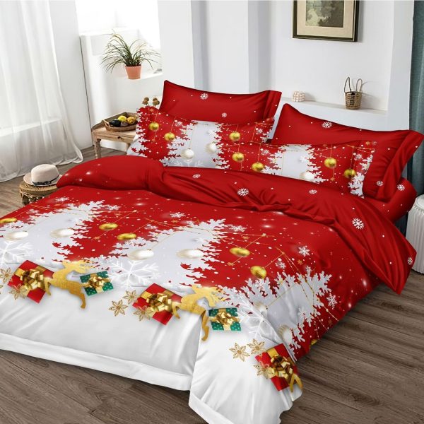 Set Lenjerie de Craciun din Finet Gros, Pucioasa, 6 Piese, Pat 2 Persoane – White Trees & Gifts – PUF128897-F9