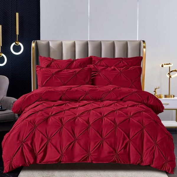 Set Lenjerie Brodata Uni, Model cu Pliuri, Bumbac Finet, 6 Piese, Pat 2 Persoane – Grena – PUF38627