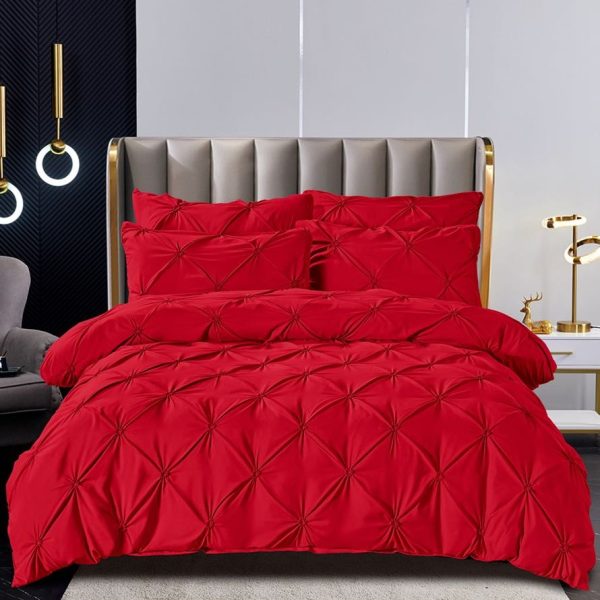 Set Lenjerie Brodata Uni, Model cu Pliuri, Bumbac Finet, 6 Piese, Pat 2 Persoane – Rosu – PUF38648