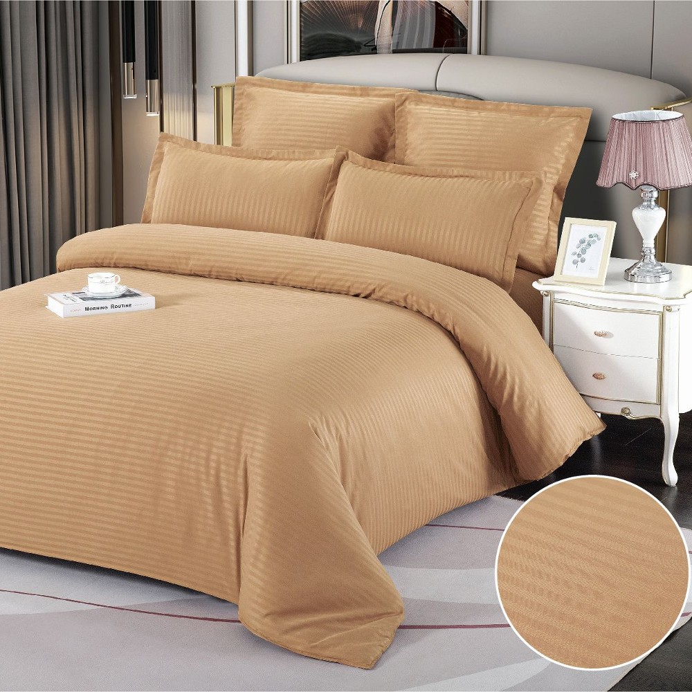 Lenjerie pentru pat dublu de 2 persoane confectionata din bumbac tesatura tip damasc. Lenjeriile din damasc sunt folosite in special in industria hoteliera, oferind o rezistenta sporita in timp dar si confortul deosebit pentru un somn placut. Aceste lenjerii sunt confectionate dintr-un damasc fin, satinat, 100% mercerizat si sanforizat. Au un aspect lucios, ceea ce le confera eleganta, un grad ridicat de delicatete la atingere precum si rezistenta la folosire si spalari repetate.