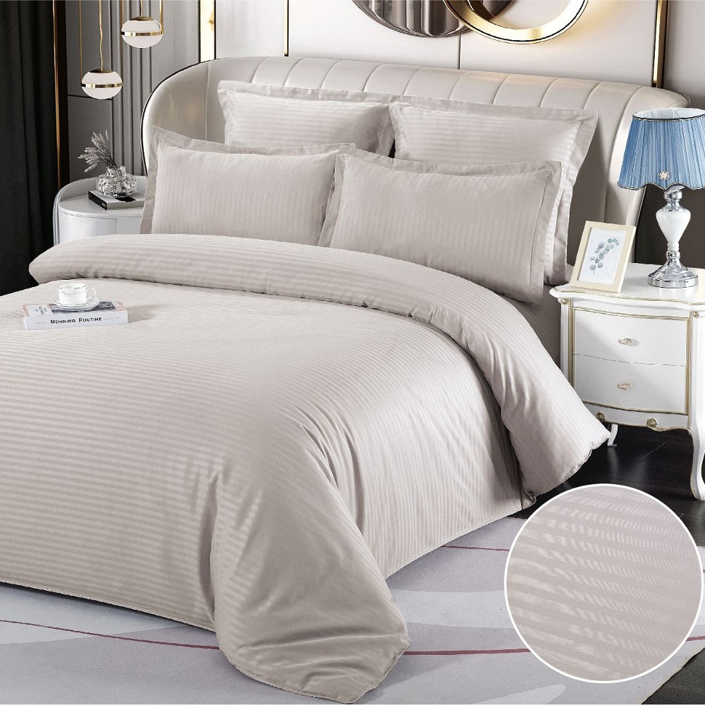 Lenjerie pentru pat dublu de 2 persoane confectionata din bumbac tesatura tip damasc. Lenjeriile din damasc sunt folosite in special in industria hoteliera, oferind o rezistenta sporita in timp dar si confortul deosebit pentru un somn placut. Aceste lenjerii sunt confectionate dintr-un damasc fin, satinat, 100% mercerizat si sanforizat. Au un aspect lucios, ceea ce le confera eleganta, un grad ridicat de delicatete la atingere precum si rezistenta la folosire si spalari repetate.