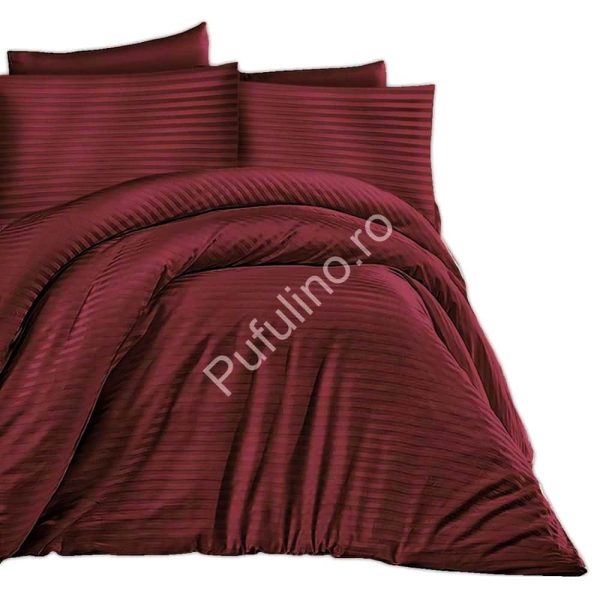 Lenjerie pentru pat dublu de 2 persoane confectionata din bumbac 100% damasc. Lenjeriile din damasc sunt folosite in special in industria hoteliera, oferind o rezistenta sporita in timp dar si confortul deosebit pentru un somn placut. Aceste lenjerii sunt confectionate dintr-un damasc fin, satinat, 100% mercerizat si sanforizat. Au un aspect lucios, ceea ce le confera eleganta, un grad ridicat de delicatete la atingere precum si rezistenta la folosire si spalari repetate.