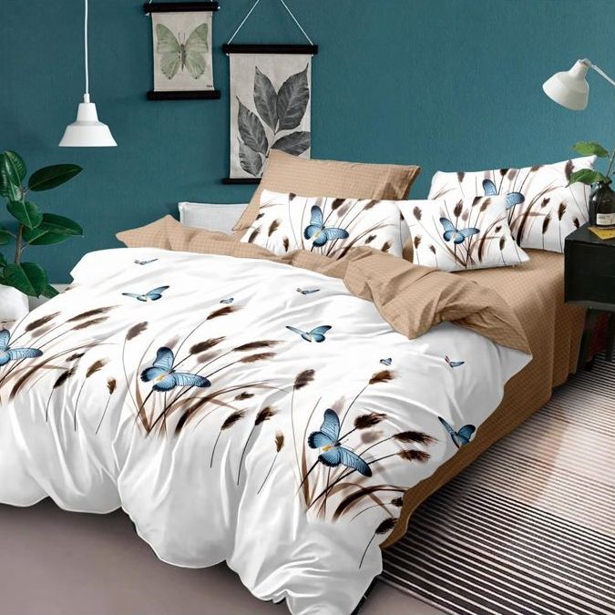 Set Lenjerie de Pat din Finet, Cearceaf cu Elastic, 4 Piese, Pat 2 Persoane Cream Butterflies – Sky Home – PUF110103