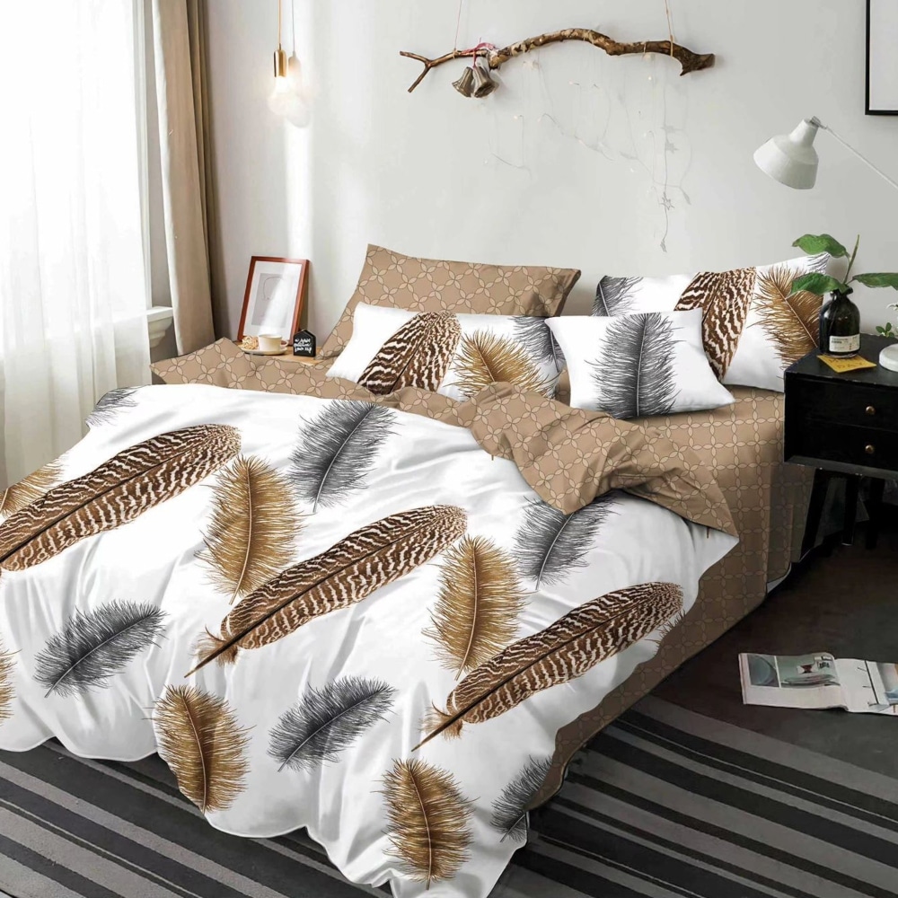 Set Lenjerie de Pat din Finet, Cearceaf cu Elastic, 4 Piese, Pat 2 Persoane Brown Feathers – Sky Home – PUF110115