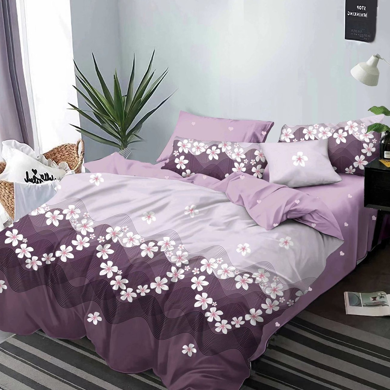 Set Lenjerie de Pat din Finet, Cearceaf cu Elastic, 4 Piese, Pat 2 Persoane Purple Hearts – Sky Home – PUF120057