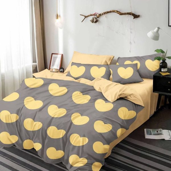Set Lenjerie de Pat din Finet, Cearceaf cu Elastic, 4 Piese, Pat 2 Persoane Yellow Hearts – Sky Home – PUF170998