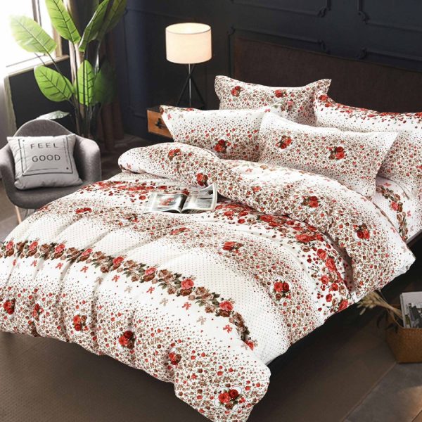 Set Lenjerie de Pat din Finet, Cearceaf cu Elastic, 6 Piese, Pat 2 Persoane Red Flowers – Sky Home – PUF39864