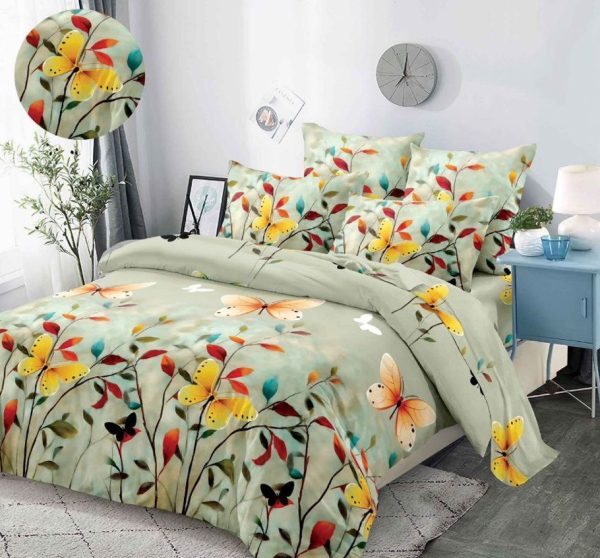 Set Lenjerie de Pat din Finet, Cearceaf cu Elastic, 6 Piese, Pat 2 Persoane Vernil Flowers – Sky Home – PUF95320