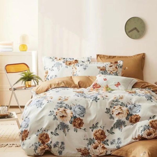 pachet lenjerie si cuvertura maro cu flori