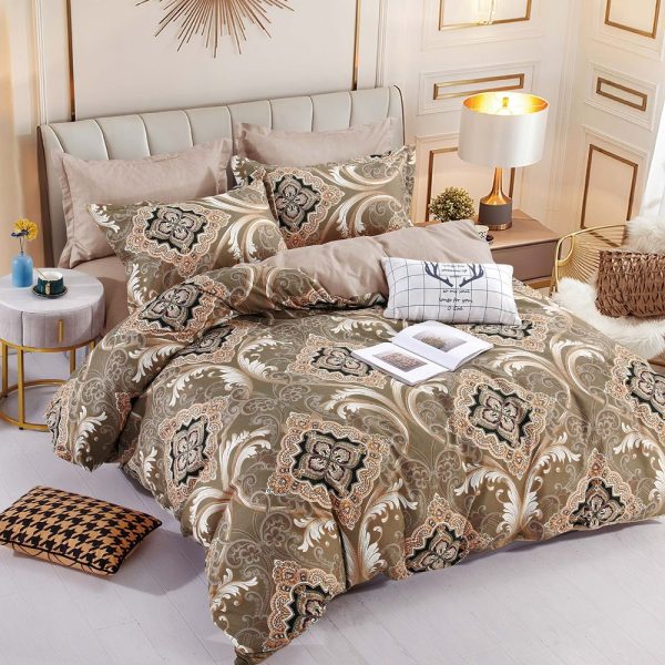 Set Lenjerie de Pat din Finet cu 2 Fete, 6 Piese, Pat 2 Persoane Beige Ornaments- JoJo Home – PUF65039