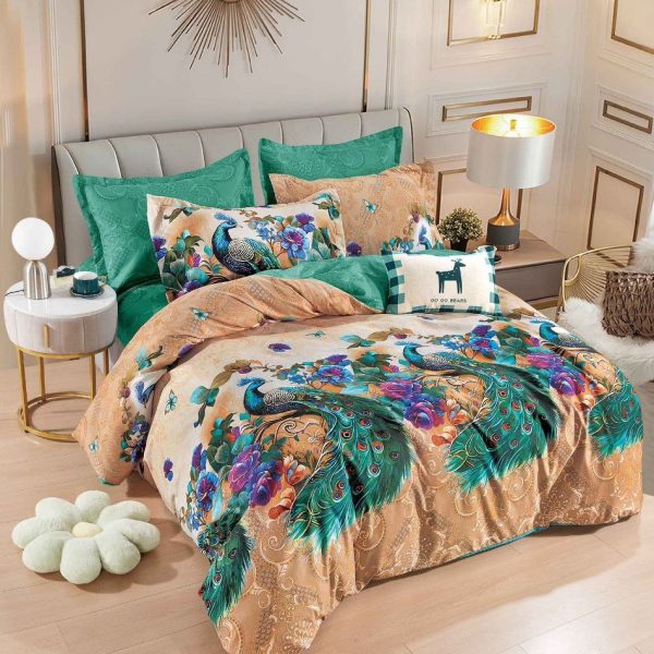 Set Lenjerie de Pat din Finet cu 2 Fete, 6 Piese, Pat 2 Persoane – Multicolored Bird – JoJo Home – PUF80661