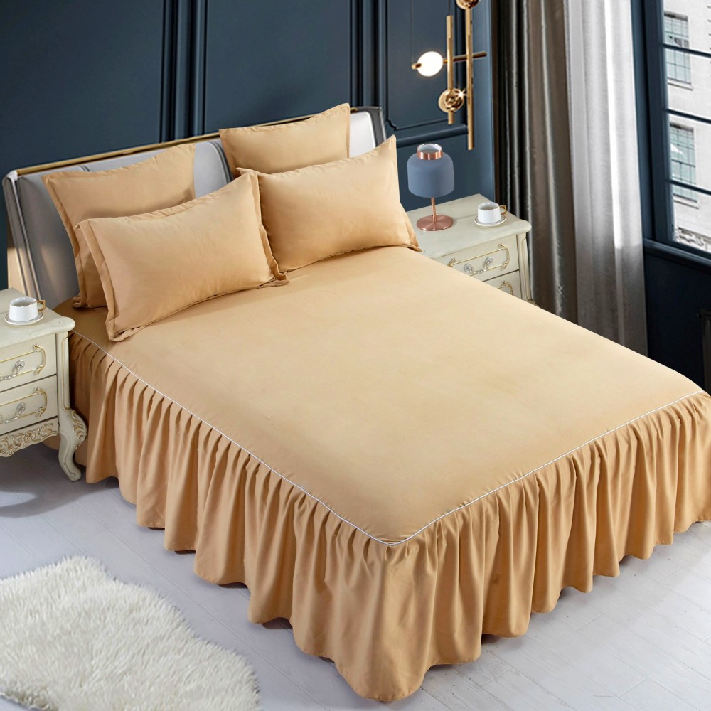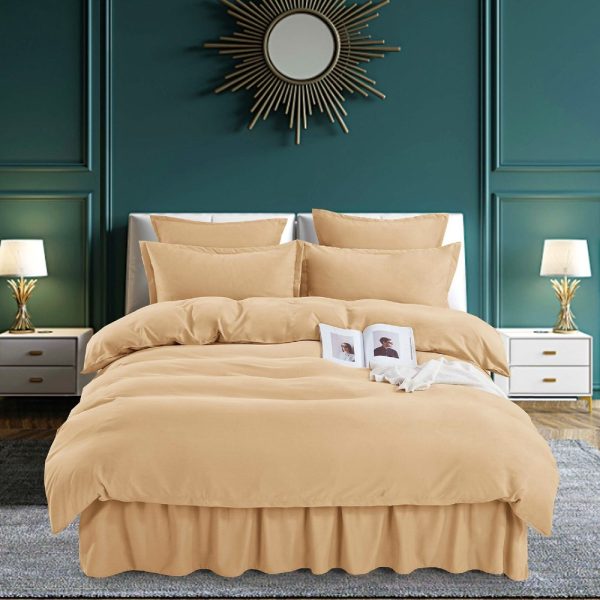 Set Lenjerie de Pat din Finet cu Volanase, Model Uni, 6 Piese, Pat 2 Persoane – Bej – JoJo Home – PUF58641