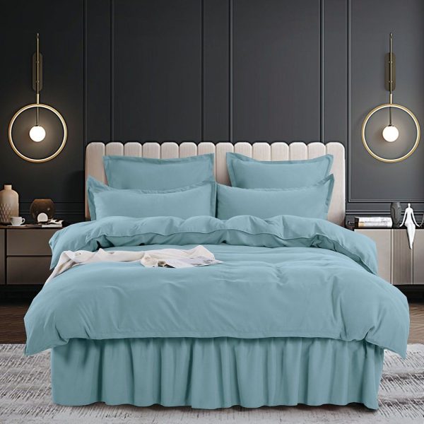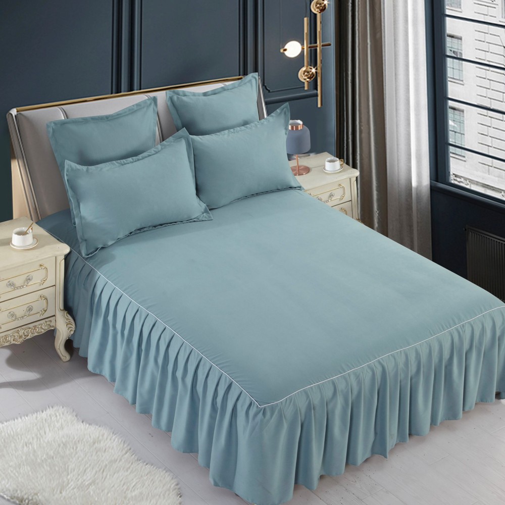 Set Lenjerie de Pat din Finet cu Volanase, Model Uni, 6 Piese, Pat 2 Persoane - Menta - JoJo Home - PUF58644