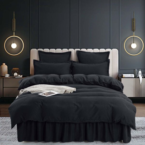 Set Lenjerie de Pat din Finet cu Volanase, Model Uni, 6 Piese, Pat 2 Persoane – Negru – JoJo Home – PUF58643