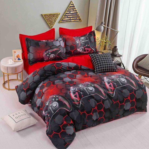 Set Lenjerie de pat din Finet Gros, Cearceaf cu elastic, 6 Piese, Pat 2 Persoane Games – Jo Jo Design – PUF112866