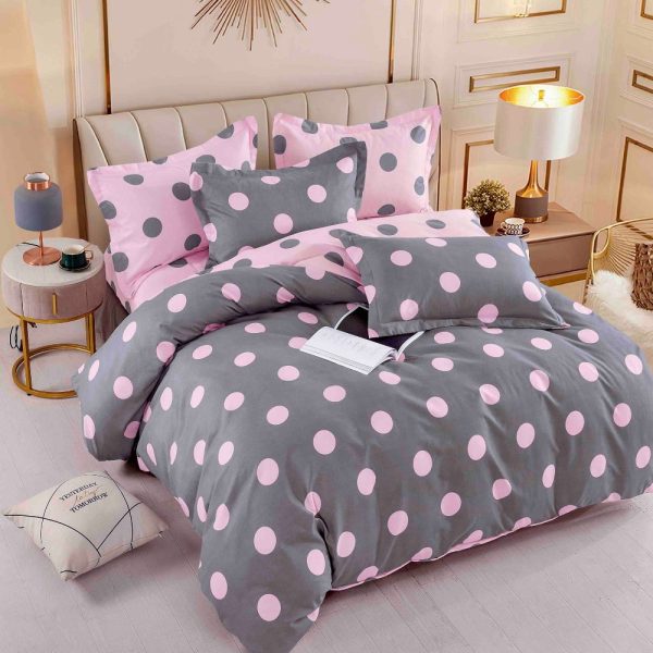 Set Lenjerie de pat din Finet Gros, Cearceaf cu elastic, 6 Piese, Pat 2 Persoane Pink Dots – Jo Jo Design – PUF119121