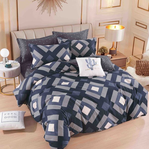 Set Lenjerie de pat din Finet Gros, Cearceaf cu elastic, 6 Piese, Pat 2 Persoane Blue Squares – Jo Jo Design – PUF164081