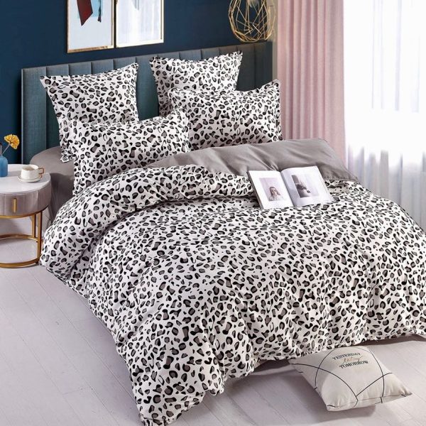 Set Lenjerie de Pat din Finet Gros, Cearceaf cu Elastic, 6 Piese, Pat 2 Persoane White Leopard – JoJo Home – PUF61086