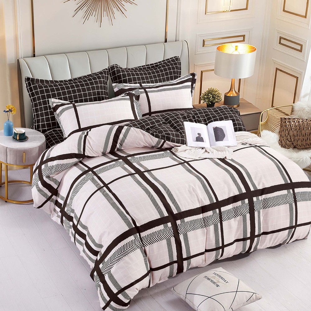 Set Lenjerie de Pat din Finet Gros, Cearceaf cu Elastic, 6 Piese, Pat 2 Persoane Brown Squares – JoJo Home – PUF64480