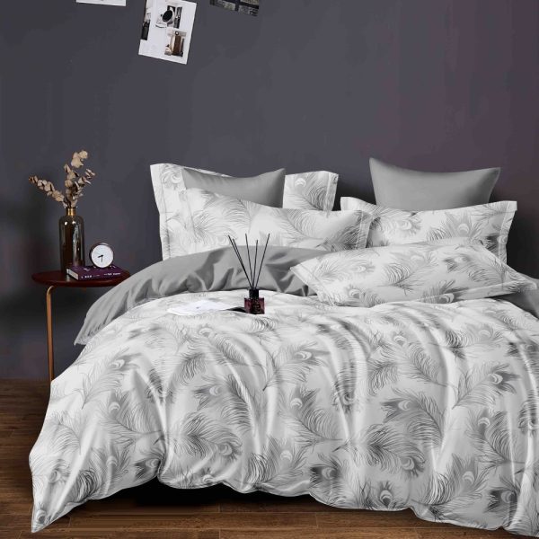 Set Lenjerie de Pat din Finet Gros, Cearceaf cu Elastic, 6 Piese, Pat 2 Persoane, New White Feathers – JoJo Home – PUF66871