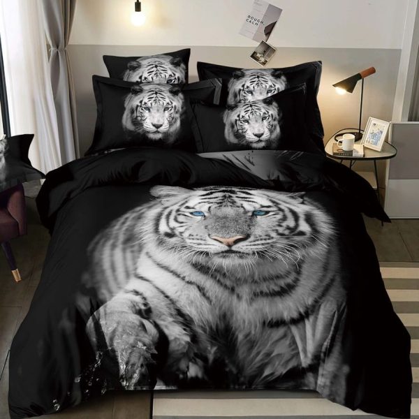 Set Lenjerie de Pat Dublu, Bumbac Finet Superior, 2 Fete, 6 Piese – White Tiger – PUF42675