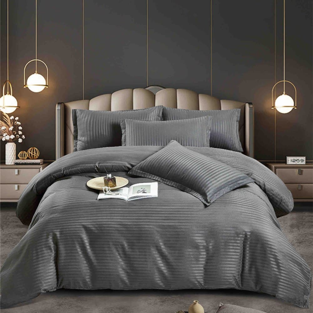 Set Lenjerie de Pat Model Damasc, 4 Piese, Pat 1 Persoana – Gri Inchis – PUF113049