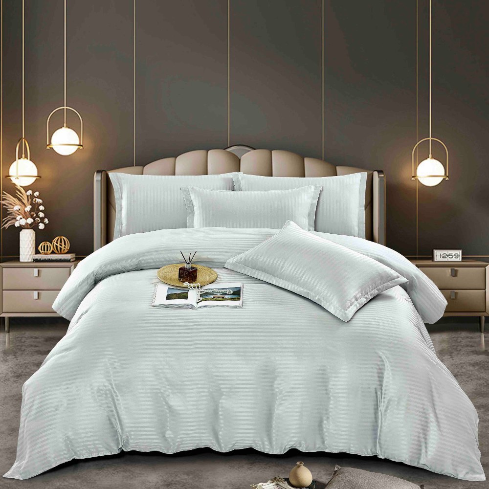 Set Lenjerie de Pat Model Damasc, Cearceaf cu Elastic, 6 Piese, Pat 2 Persoane – Ou de Rata – PUF142423