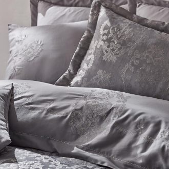 Tesatura este fina, de tip jacquard, probabil cea mai cunoscuta tesatura din lume atunci cand vine vorba de lenjerii de pat. Modelul este unul complex, modul de realizare fiind teserea in urzeala pe un razboi mecanic special conceput(nu este imprimat). Este rezistenta in timp si panza are o calitate deosebita, tiparul fiind unul cu totul si cu totul special, disponibilitatea in multiple culori oferindu-i un avantaj ideal in alegerea nuantei care sa se potriveasca perfect in decorul dormitorului dumneavoastra.