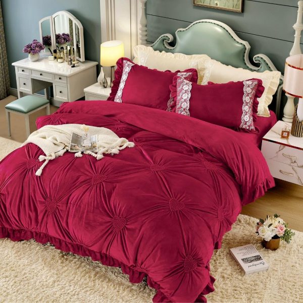 Alege noile lenjerii din catifea intr-o varietate de 13 nuante, compuse din 4 piese. Un set de lenjerie din catifea cu broderie este alcatuit din cearceaf de pat mare si elegant, plic pentru pilota prevazut cu o textura in relief extrem de catifelata, cat si 2 fete de perna pentru a-ti oferi tot confortul necesar in timpul somnului.