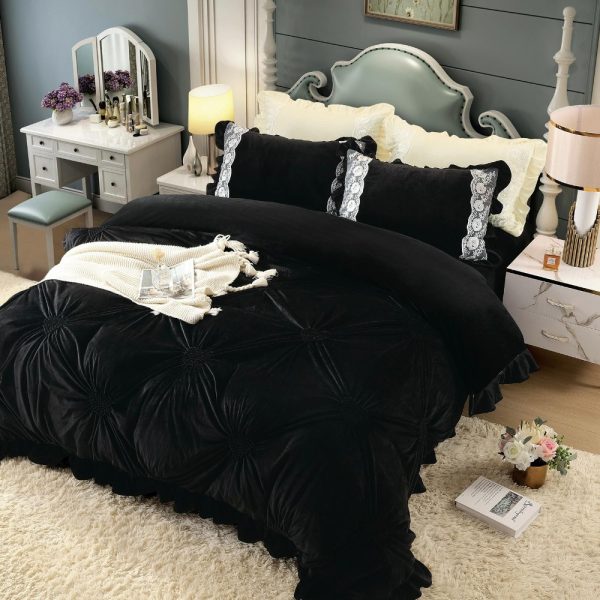 Alege noile lenjerii din catifea intr-o varietate de 13 nuante, compuse din 4 piese. Un set de lenjerie din catifea cu broderie este alcatuit din cearceaf de pat mare si elegant, plic pentru pilota prevazut cu o textura in relief extrem de catifelata, cat si 2 fete de perna pentru a-ti oferi tot confortul necesar in timpul somnului.