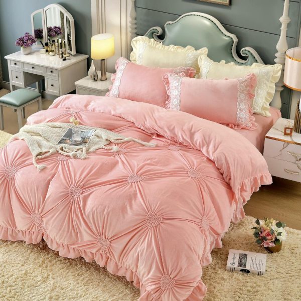 Alege noile lenjerii din catifea intr-o varietate de 13 nuante, compuse din 4 piese. Un set de lenjerie din catifea cu broderie este alcatuit din cearceaf de pat mare si elegant, plic pentru pilota prevazut cu o textura in relief extrem de catifelata, cat si 2 fete de perna pentru a-ti oferi tot confortul necesar in timpul somnului.