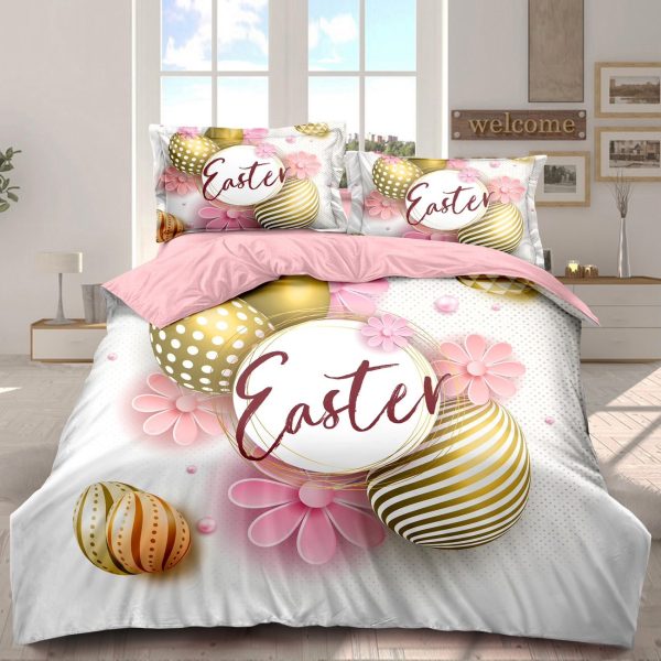 Set Lenjerie Finet Gros, 6 Piese, Pat 2 Persoane, Cearceaf cu Elastic, Model de Paste – Happy Easter – PUF190625-BL3