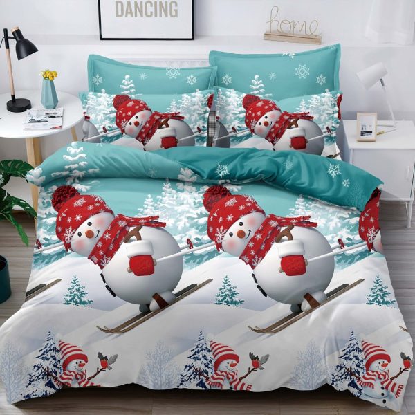 Set Lenjerie Finet Gros, JoJo Home, 6 Piese, Pat 2 Persoane – Funny Snowman – PUF29252