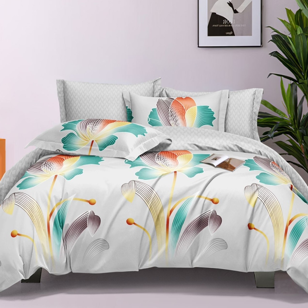 Important: Lenjeria din imagine dispune de cearceaf de pat cu elastic si este compusa din 4 piese.