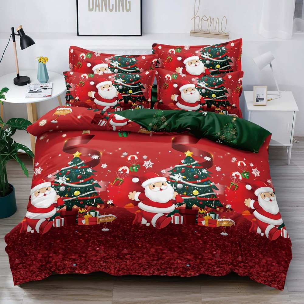 Set Lenjerie Model de Craciun, Pat 1 Persoana, 4 Piese – JoJo Home – PUF74480