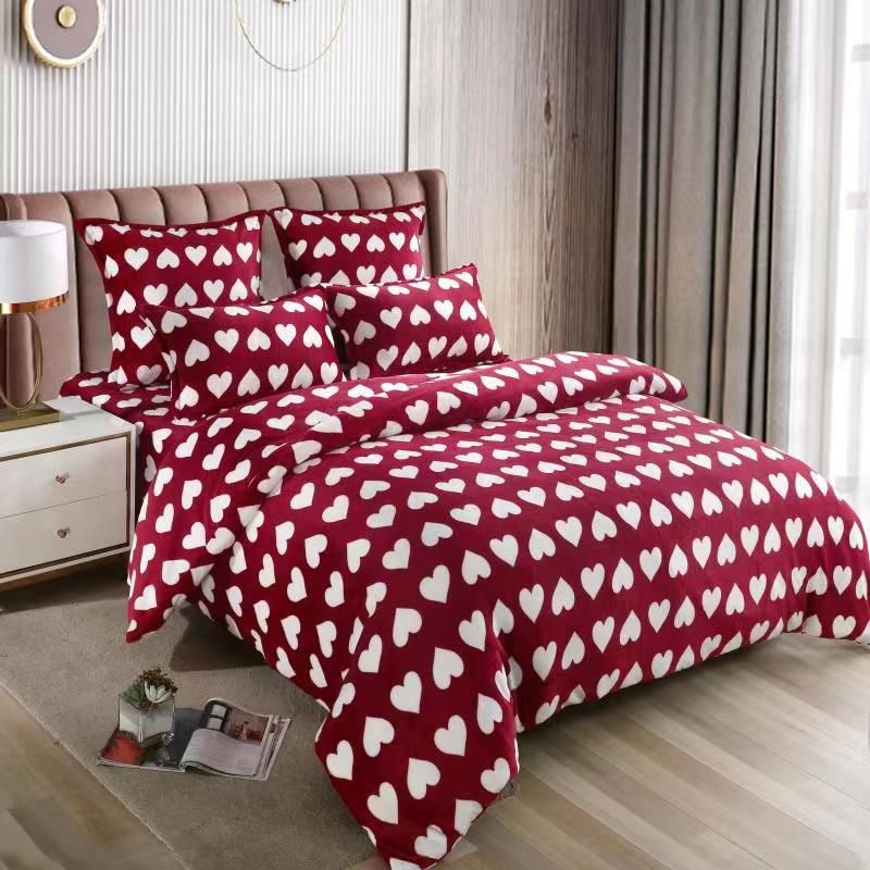 Set Lenjerie Pufoasa Cocolino, 4 Piese, Pat 2 persoane – Sky Home – White Hearts – PUF60157