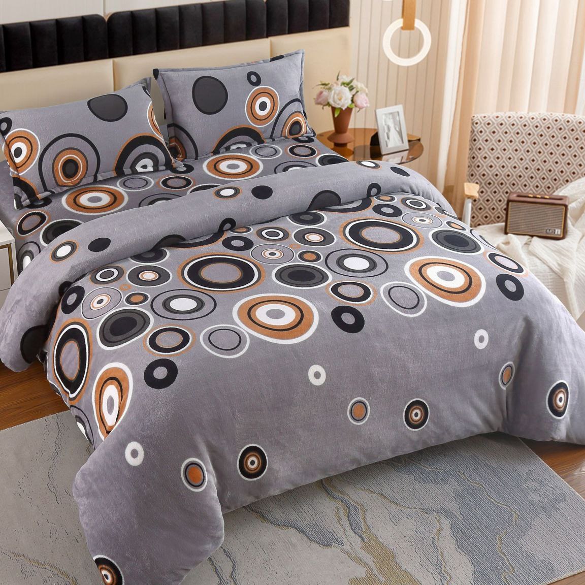 Set Lenjerie Pufoasa Cocolino, 4 Piese, Pat 2 persoane – Sky Home – Grey Circles – PUF60161