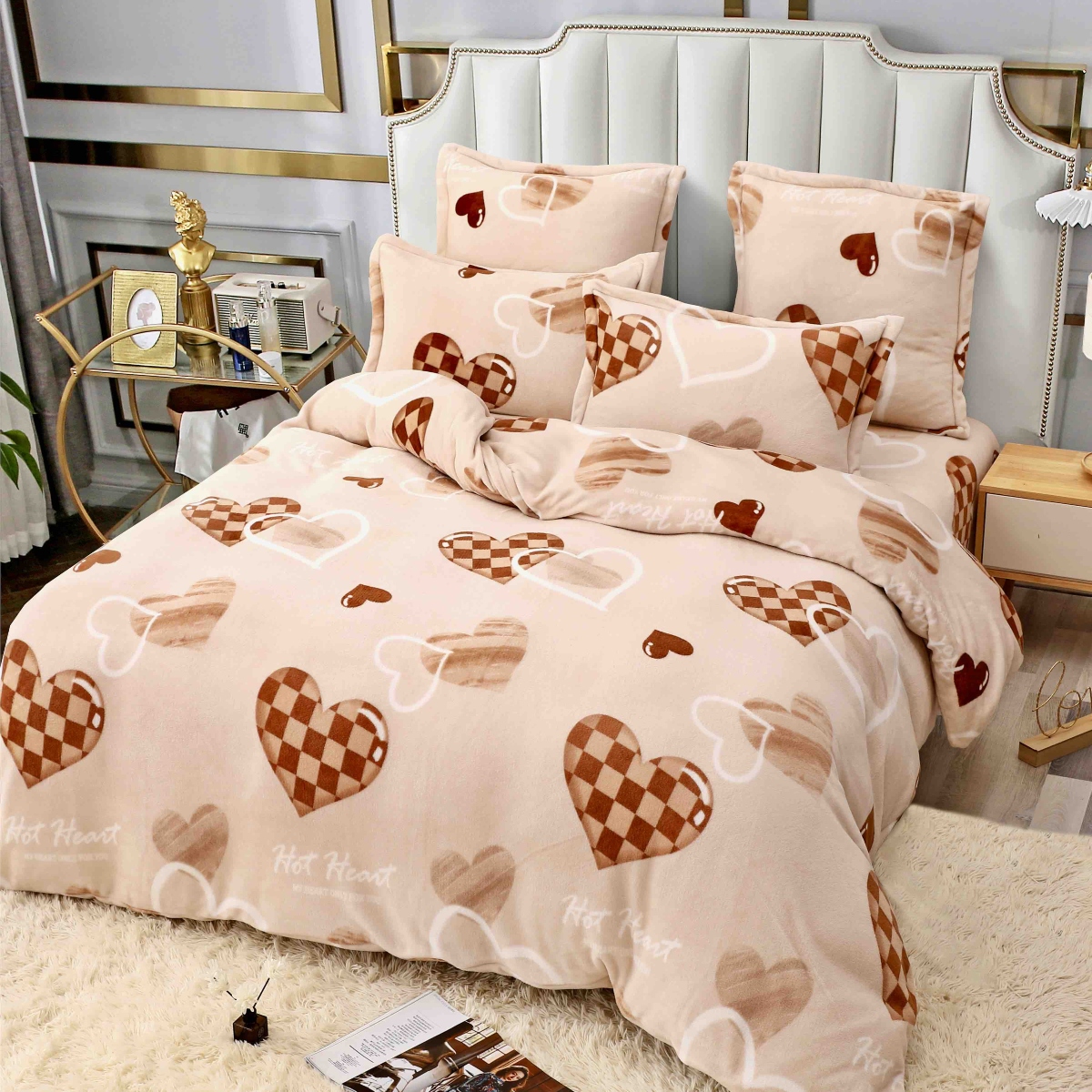 Set Lenjerie Pufoasa Cocolino, 6 Piese, Pat 2 Persoane – JoJo Home – Chess Hearts – PUF170216