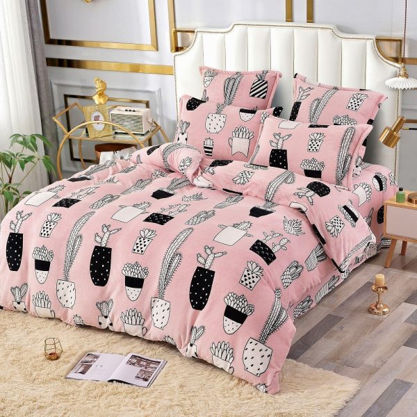 Set Lenjerie Pufoasa Cocolino, 6 Piese, Pat 2 Persoane – JoJo Home – Pink Cactus – PUF77816