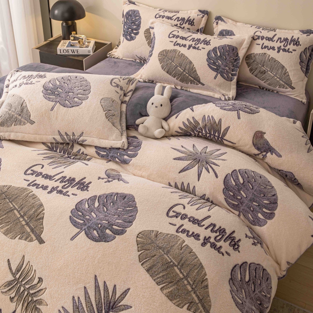 Set Lenjerie Pufoasa Cocolino cu Elastic, 4 Piese, Pat 2 Persoane – Blue Leafs – PUF176836