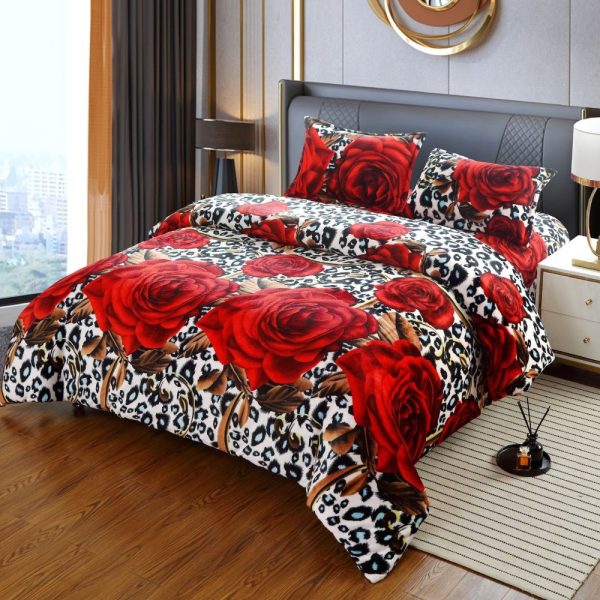 Set Lenjerie Pufoasa Cocolino cu Elastic, Pat 2 Persoane, 4 Piese- Sky Home – Big Roses – PUF174781*