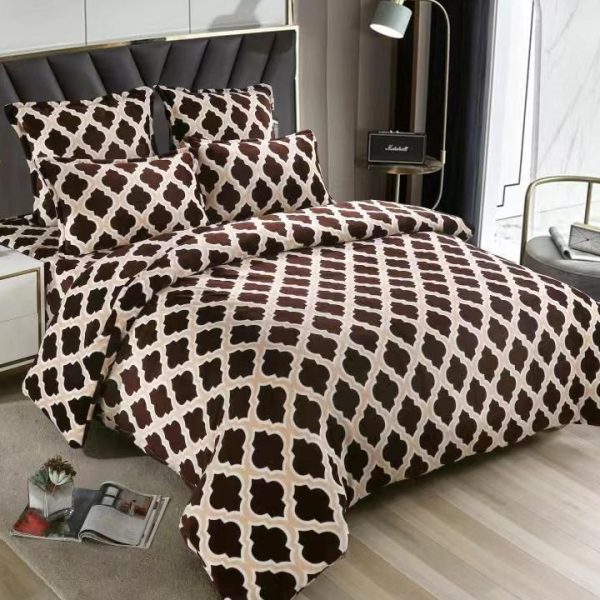 Set Lenjerie Pufoasa Cocolino cu Elastic, Pat 2 Persoane, 4 Piese- Sky Home – Brown Diamonds – PUF174780*