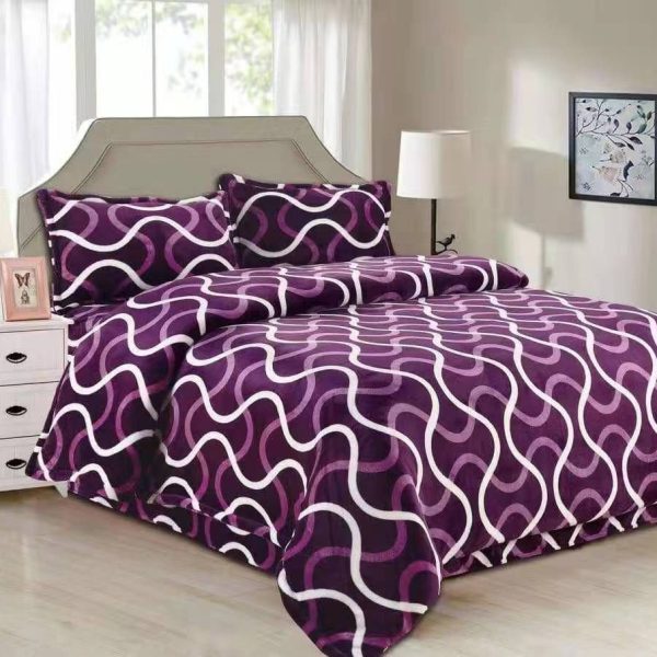 Set Lenjerie Pufoasa Cocolino cu Elastic, Pat 2 Persoane, 4 Piese- Sky Home – Purple Lines – PUF174774*