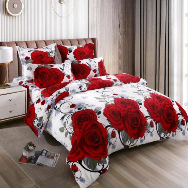 Set Lenjerie Pufoasa Cocolino cu Elastic, Pat 2 Persoane, 4 Piese- Sky Home – Red Roses – PUF174782*