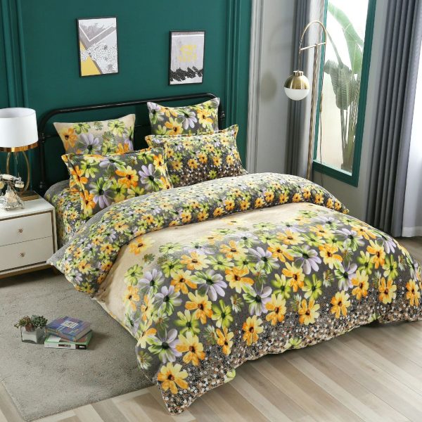 Set Lenjerie Pufoasa Cocolino cu Elastic, Pat 2 Persoane, 4 Piese- Sky Home – Yellow Flowers – PUF174777*