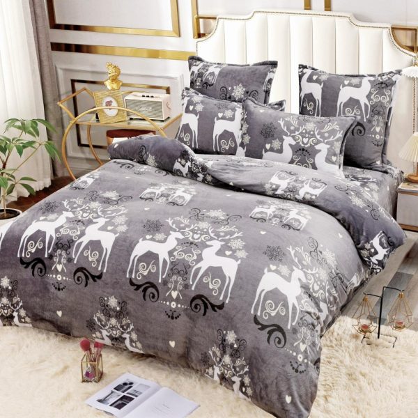 Set Lenjerie Pufoasa Cocolino de Craciun, 6 Piese, Pat 2 Persoane – JoJo Home – Grey Winter – PUF170241