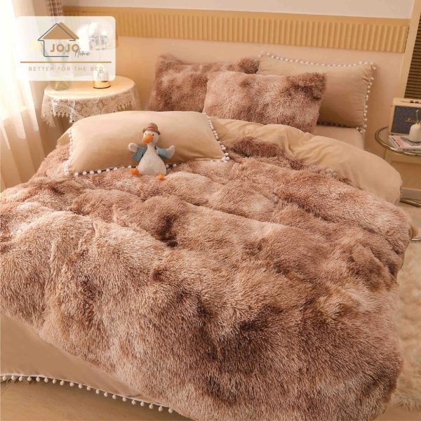 Set Lenjerie Super Pufoasa Cocolino, Model Fluffy, 6 Piese, Pat 2 persoane – Maro Degradé – JoJo Home – PUF180683