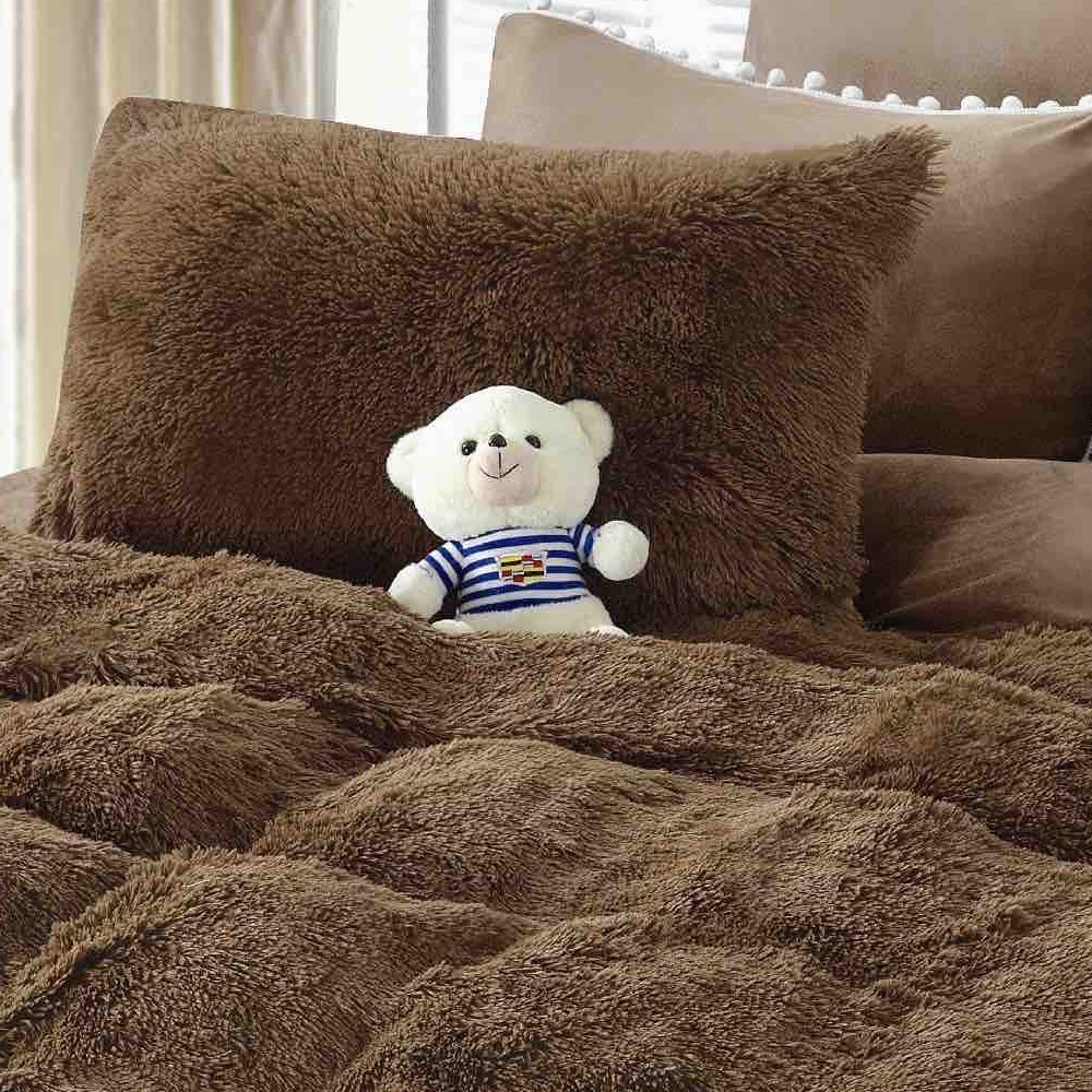 Set Lenjerie Super Pufoasa Cocolino, Model Fluffy, 6 Piese, Pat 2 persoane – Maro – JoJo Home – PUF66492